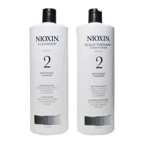 -. Feature : Nioxin Cleanser, 33.8 OZ / 1L A daily volumizing cleanser that gently removes residue and DHT from the scalp and hair to promote a healthy scalp environment. It also provides nourishing vitamins, proteins and amino acids. / Nioxin Scalp Therapy, 33.8 OZ / 1L A daily volumizing scalp and hair conditioner that moisturizes and improves resilience, while promoting a healthy scalp environment with soothing essential oils, special anti-oxidants and enzymatic complexes.