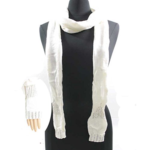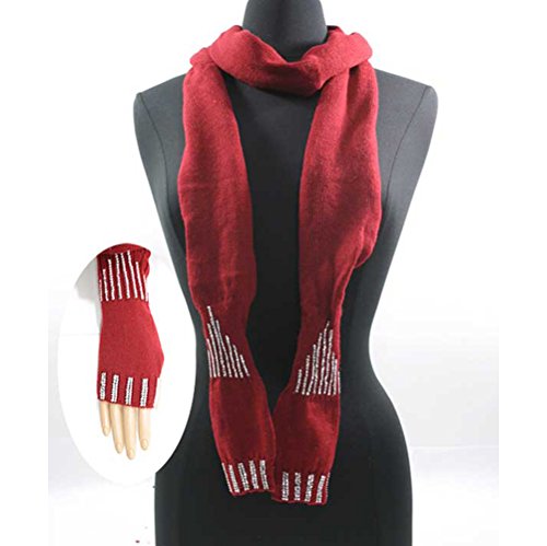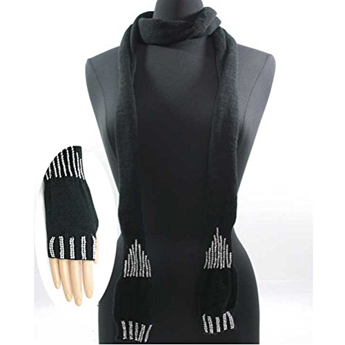 Binding : Apparel Product Description Never lose your gloves again with this stylish long thin rectangle scarf that won't overwhelm you but keep you warm and on trend. Long enough to wrap around your neck or hang it long and loose. Hands feeling cold? Slip them into these fingerless mitten pockets at the end of the scarf. Slide them further up to wear as arm warmers. Ribbed design helps keep the fingerless mittens in place. Designed with sparkly rhinestones for a unique touch. Why Accessory Necessary? We take care of the details that make the difference, whether its choosing the right color combination, looking at the seams or deciding the size. We take pride in our fashion accessories designed especially for you. Please note, due to different manufacturing dye lots and computer monitor settings, color may appear different than on screen. We want you to love the product, so please contact us if we can help you be happy with your purchase. What are you luxing for? Please note: quality of the item can only be guaranteed if bought by Accessory Necessary, NYC seller 0