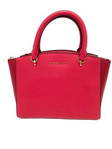 Michael Kors Women's ELLIS LARGE Satchel Leather Handbag Lipstick Cherry