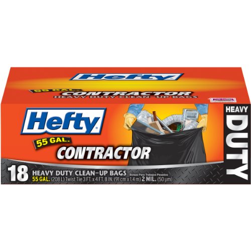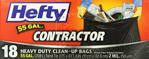 Hefty Contractor Heavy Duty Clean-Up Bags (Twist Tie, 55 Gallon, 18 Count, Pack of 4)