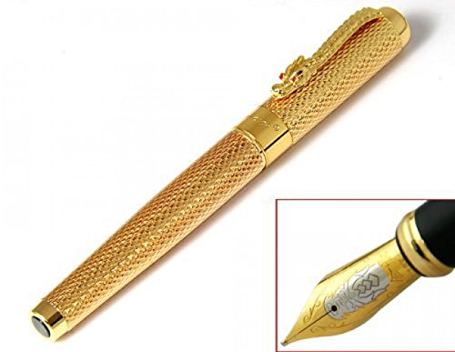 Jinhao Brand New Golden Dragon Red Crystal Eyes Fountain Pen with Push in Style Ink Converter