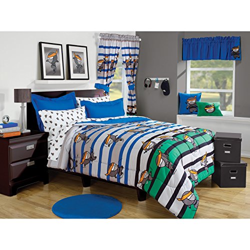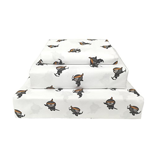 Studio : Beco Industries Publisher : Beco Industries Product Description Let your little ninjas sleep in this super soft microfiber sheet set from Beco Home. Each set consists of a flat sheet, fitted sheet and pillowcase (two with full size) and is machine washable for easy care. Fitted Sheet Pocket Depth: 14 InchesAge: KidsType: Sheet SetMaterial: Microfiber, PolyesterStyle: CasualPattern: Character, NoveltyWeave: PolyesterCare Instruction: Machine WashSet Includes: 4 Piece, 3 PieceColor: White, GreySize: Twin, FullDimensions: Twin: Flat Sheet - 66 inches x 96 inches, Fitted Sheet - 39inchesx 75inches 14inchespocket, One Pillowcase - 20inchesx 30inches. Full: Flat Sheet - 84inchesx 96inches, Fitted Sheet - 54inchesx 75inches 14inchespocket, Two Pilllowcases - 20inchesx 30inchesThe digital images we display have the most accurate color possible. However, due to differences in computer monitors, we cannot be responsible for variations in color between the actual product and your screen. For further information please see our Sheets Buying Guide. 0