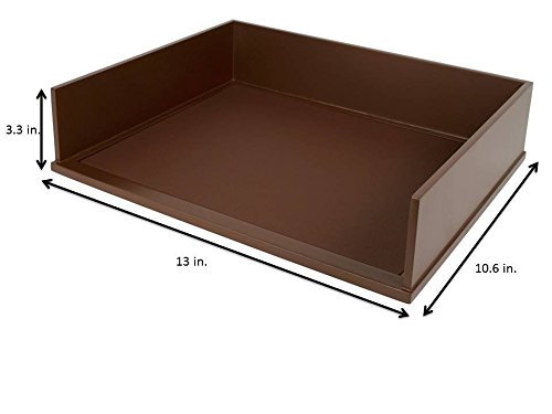 -. Feature : Brown letter tray perfect for holding letter size papers, files and folders / Stackable letter trays allow for five trays to be stacked ontop of eachother / Wooden construction, premium double coated matte brown finish and faux leather adds a touch of class / Desk organizer provides an elegant solution for office supplies