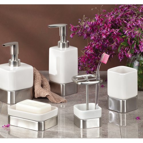 - Bath accessory set with soap dispenser, toothbrush holder and tumbler