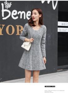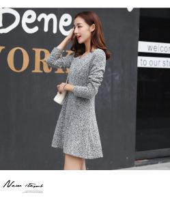ニットワンピース ミニ丈ワンピース フレアスカート Uネック 長袖 ガーリー 秋冬 シンプル 定番 無地
