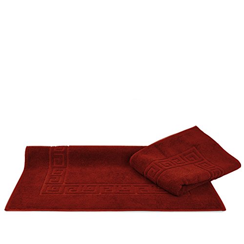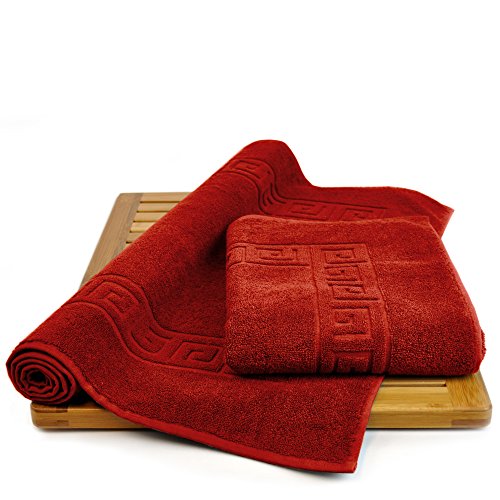 Luxury Hotel & Spa Towel Turkish Cotton Greek Key (Large Bath Mat - Set of 2, Cranberry)