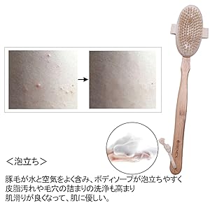 豚毛が水と空気をよく含み、ボディソープが泡立ちやすく
