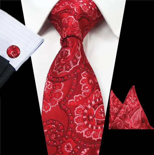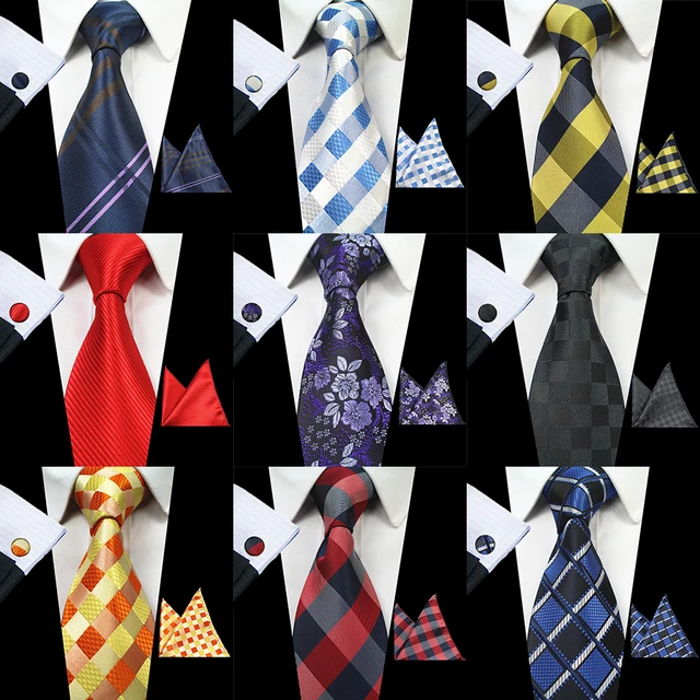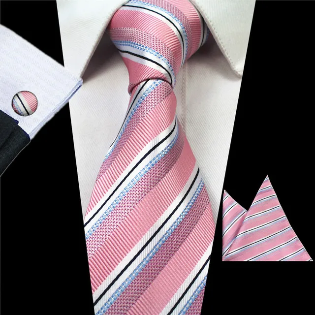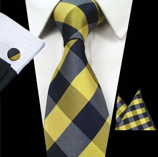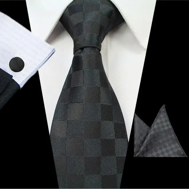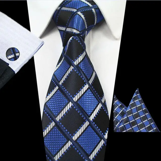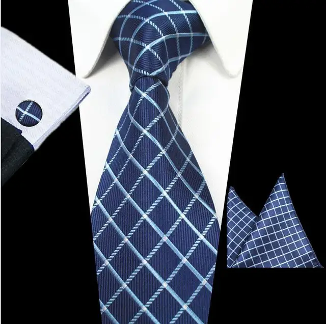| [해외]RBOCOTT 클래식 8 센치메터 넥타이 남성 실크 자카드 짠 격자 무늬 넥타이 손수건 커프스 세트 남성 스트라이프 웨딩 넥타이 |