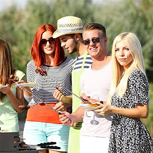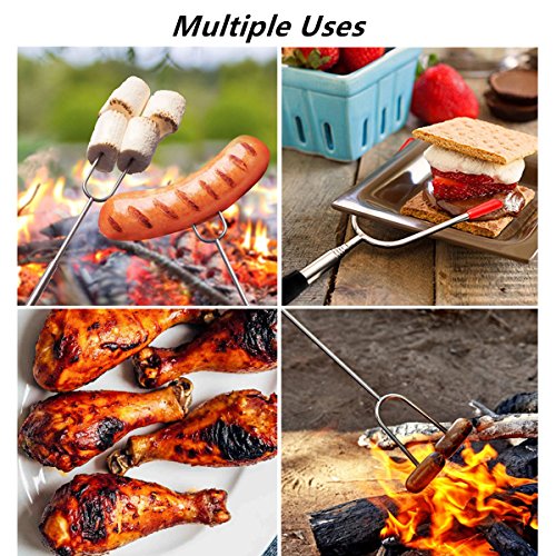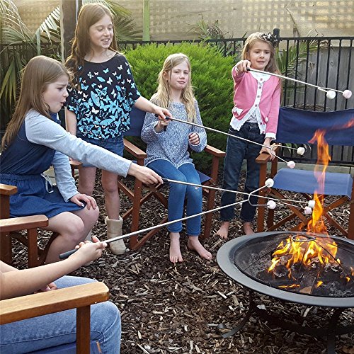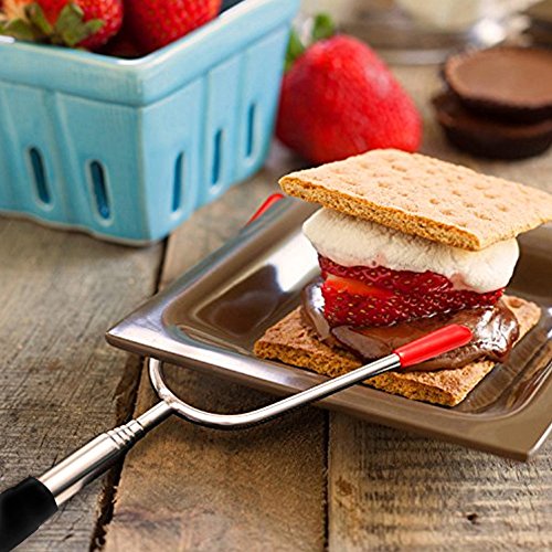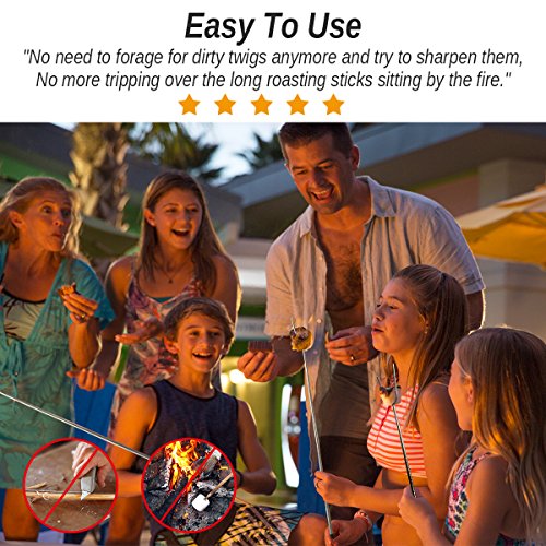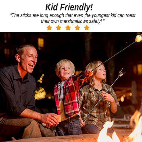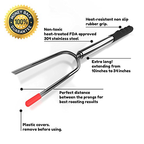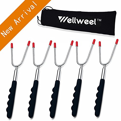 The Wellweel Marshmallow Roasting Sticks will change the way you roast forever! - Easy to use, cooking hot dogs, smores, kabobs and more, not risk it with dirty twigs - Easy to clean, Non-stick coating for no-mess clean up, and dishwasher safe - Easy to carry, Canvas pouch convenient for camping trips or storing at home - Solid and completely reliable, they secure your food in place for the best roasting experience - Protective rubber tips for prongs, for perfect storage and safe handling around children - Comfortable rubber handle with finger indents for a firm steady grip - High-Quality Extra Long Extendable Telescoping Durable 304 Stainless Steel - Telescoping forks extend to 34" in length to better protect children and adults from the fire while roasting food.