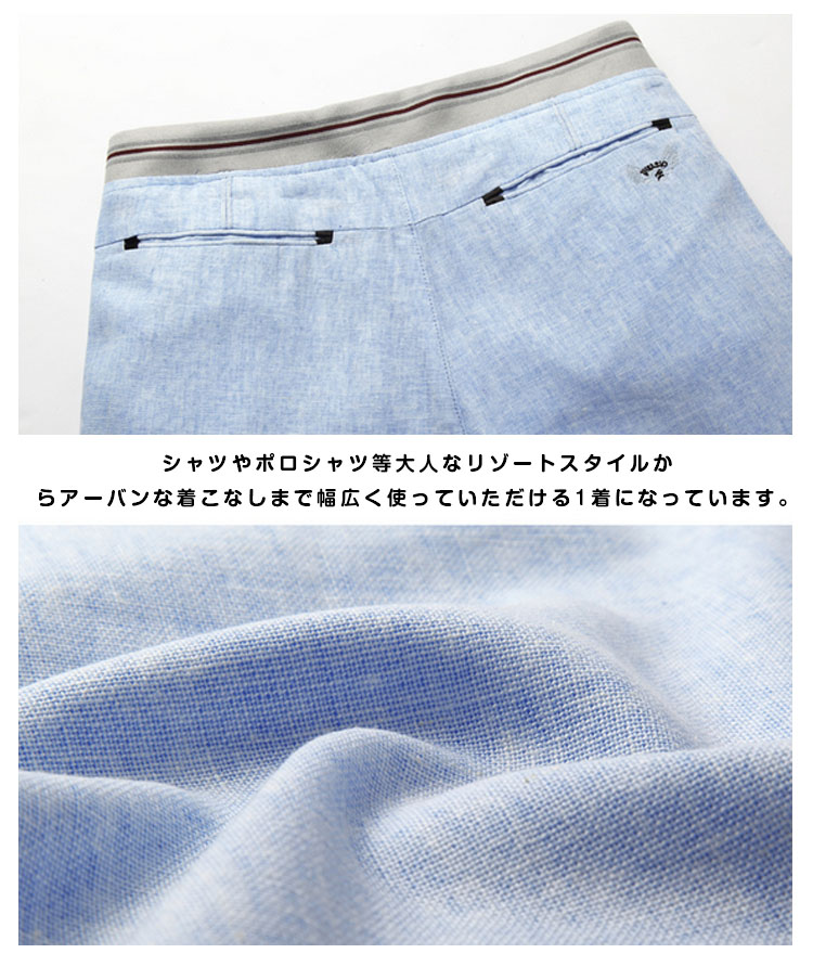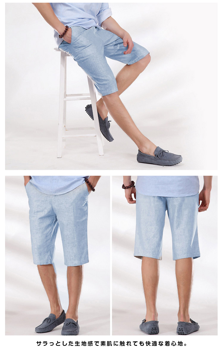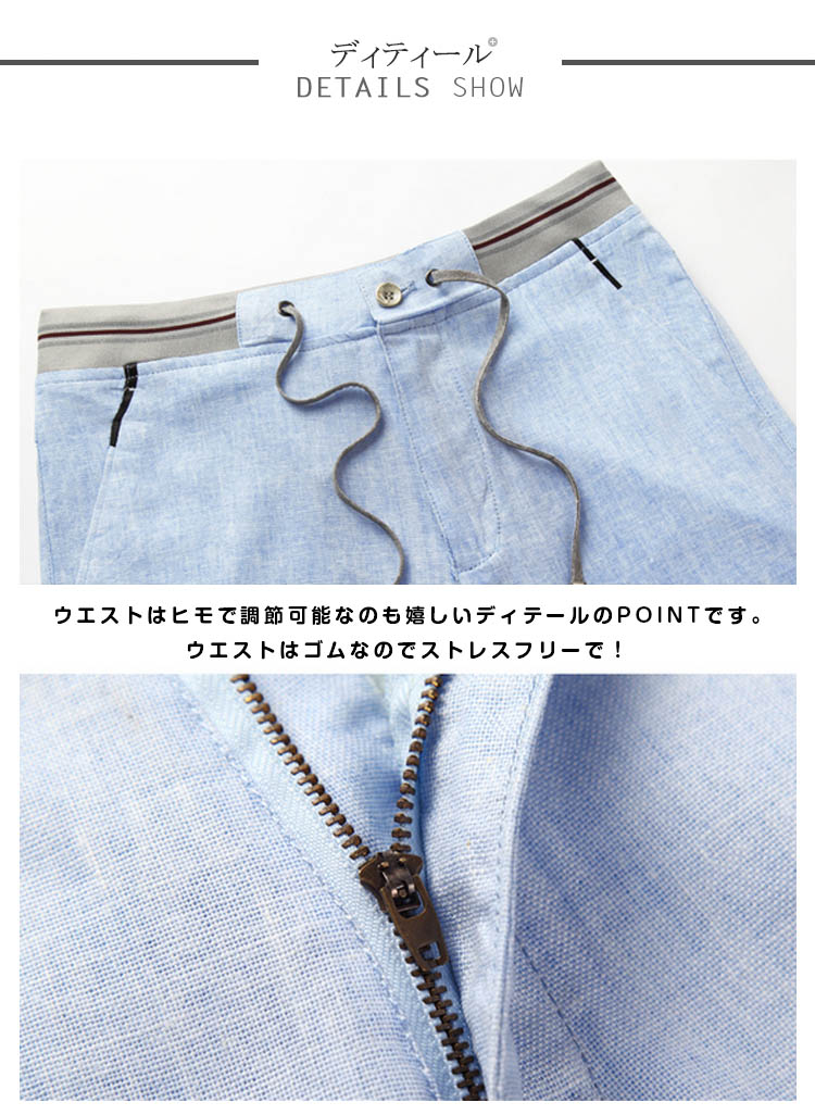 | 通気性の良い涼しげな綿麻ショートパンツ。サラっとした生地感で素肌に触れても快適な着心地。遊び心のある大人にピッタリのショートパンツに仕上がっています。無地アイテムは一着は持っておきたい万能アイテムなので是非オススメします。 | |