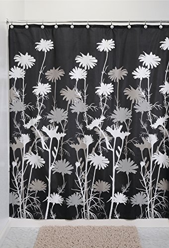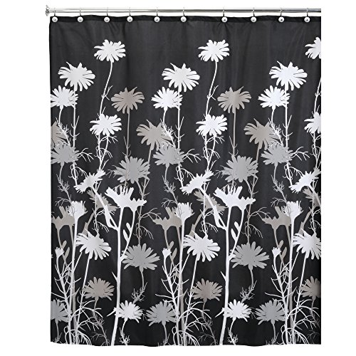 mDesign Daisy Fabric Shower Curtain - 72" x 72", Black/Gray
