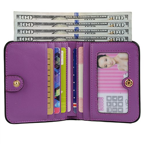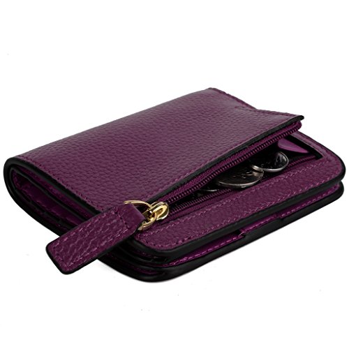YALUXE Women's Small Compact Bi-fold Leather Pocket Wallet Purple