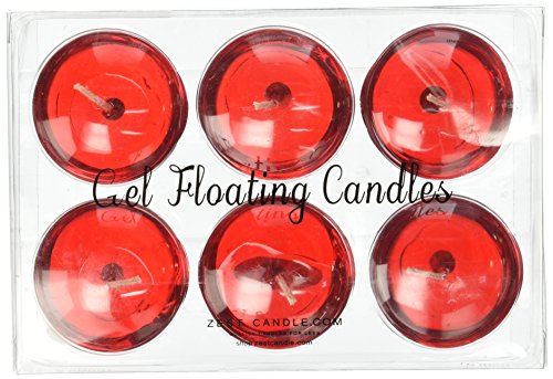 Zest Candle 6-Piece Folding Candles, 3-Inch, Clear Red Gel