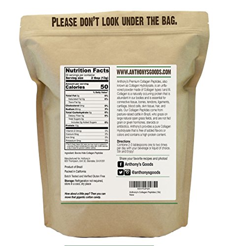 -. Title : Anthony's Collagen Peptide Powder (1lb), Pure Hydrolyzed, Gluten Free, Keto and Paleo Friendly