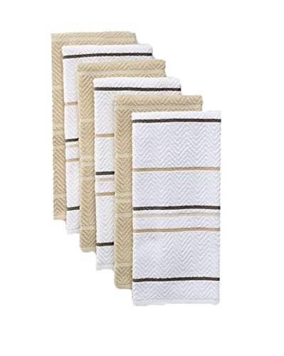 - Set of 6 kitchen towels - 3 striped print and 3 solid khaki