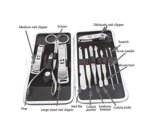- Feature : Keep your nails and cuticles always look perfect with this new generic 12 in 1 nail kit tools. / Each tool is designed for special function which brings much convenience beyond your imagination. / Made of stainless steel, can be used for many years. / Delicate case, making each tool well-organized and well-protected. / Small size and light weight, convenient to carry.