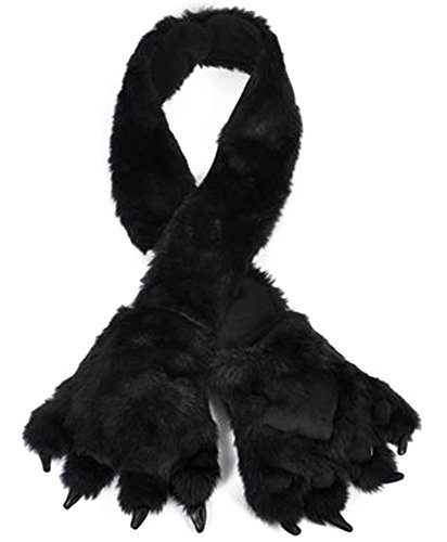 Black Wolf Animal Fur Scarf with Paw Mitten