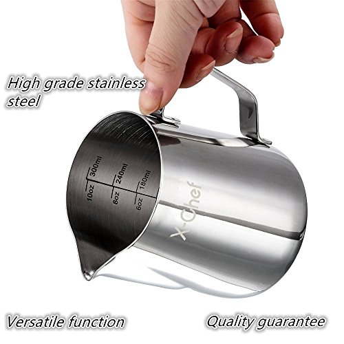 ⌛WARRANTY&Friendly Customer Service: We have a commitment to every buyer 100% satisfaction. After all, we are customers, too, so if you have any problem about our X-Chef milk pitcher, just contact us for a satisfying solution.