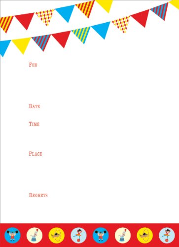 (Party Partners Design)/Stationery Party Supplies/Party Supplies/DIRECT FROM USA/Party Partners Design Retro Big Top Circus Themed Fill-In Style Invitations, Blue/Red, 12 Count