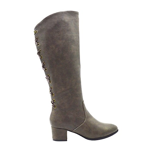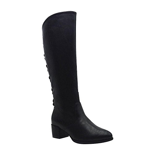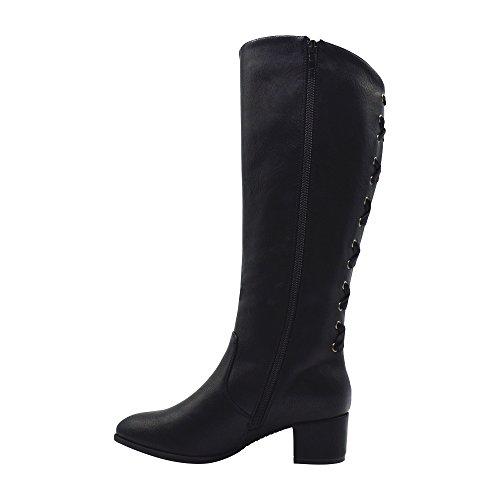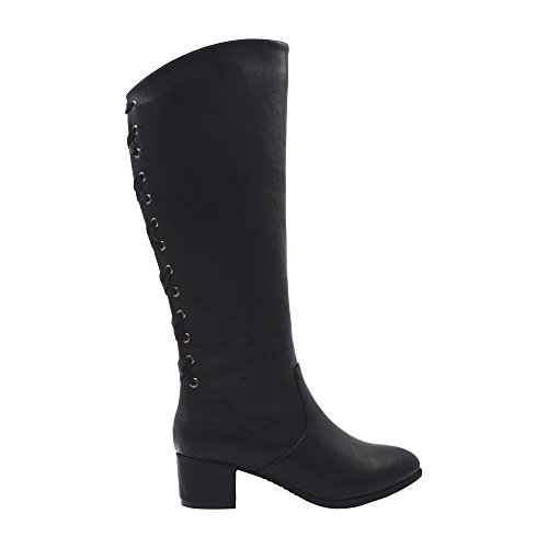 Binding : Apparel Product Description These stylish boots include a ribbon lace up detail on the back side, giving them a sleek and edgy look. These boots feature a small heel and can be worn casually during the day or on a night out or give your casual style a bit of edge. These knee high boots can be styled with your favorite pair of jeans or with a knit dress, making them versatile for an endless amount of outfit possibilities for fall and winter. 0