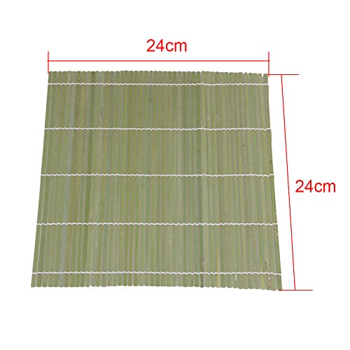 Studio : BQLZR Publisher : BQLZR Binding : Misc. Product Description Feature: 1.Every product has a unique Manufacturing Part Number label on the inner package that proves it has been qualified,which include Part Number,Model Number and inspection date information; 2.If you have any questions about the item,please provide us the Manufacturing Part Number for checking,your profits will be guaranteed. 3.Made of natural bamboo, it's square, 24cm. 4.Suitable for making Sushi. 5.To extend the service life, prevent it mould, transform the shape and color, please do NOT put the mat in water, get damp or be under the blazing sun for a long time. Specifications: Color: Green Material: Bamboo Brand name: BQLZR Size: 24 x 24cm/9.45 x 9.45 inches (L x W) Weight: 443g Package include: 5 x Sushi Rolling Mats 0