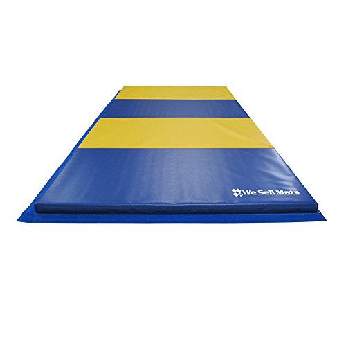 We Sell Mats GM4x8YWBLv4-50M Yellow/Blue 2" Thick Gymnastics Tumbling Exercise Folding Martial Arts Mats with Hook & Loop Fasteners On 4 Sides Crosslink PE Foam Core