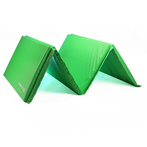 We Sell Mats GM4x8LMGv4-35M Lime Green 1.5" Thick Gymnastics Tumbling Exercise Folding Martial Arts Mats with Hook & Loop Fasteners On 4 Sides Crosslink PE Foam Core