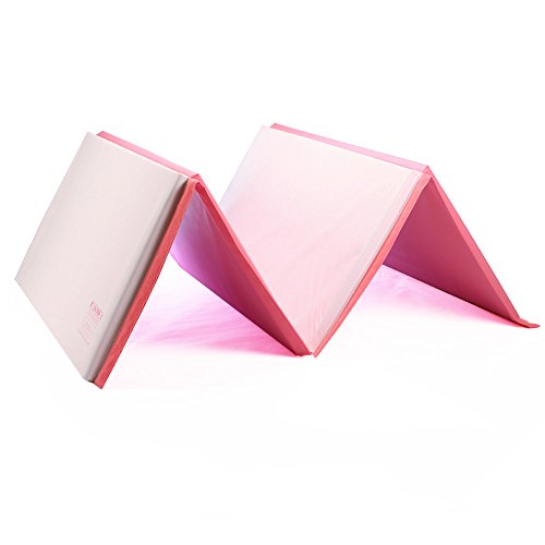 We Sell Mats Gymnastics Tumbling Exercise Folding Martial Arts Mats with Hook & Loop Fasteners, White/Pink, 2"