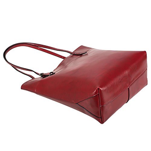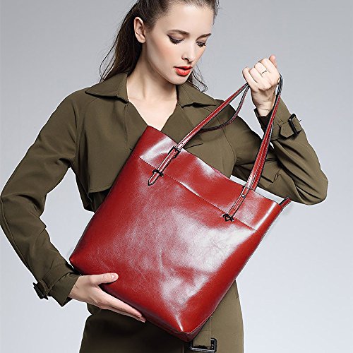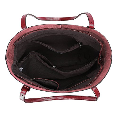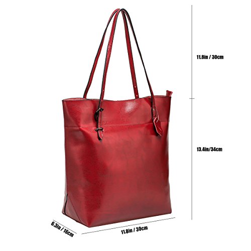 Product Description S-ZONE Vintage Genuine Leather Tote Shoulder Bag Handbag Big Large Capacity Brand:S-ZONE Department: Women Style: OL Style/Business Style/Casual Style This tote bag holds 11LB/5KG maximum Structures: External: 1. One back zipper pocket for holding frequently used items. 2. Handles are strengthen designed by metal nails and can be adjusted easily at one side. Internal: 2 big compartments, a central zippered pocket for IPAD, 1 side zippered pockets for wallets and another 2 pockets for keys/cards. Simple designed and roomy tote but not too big. Perfect gift idea! Material: Cow Split Leather with Coating Finish Cow Split leather is often coated to be various colors and pattern.It is moderate genuine leather,soft and anti-scratch.To creat a vintage and noble look,the leather is often polished and oiled,which makes the surface shinier and sleeker.The more you use,the more retrospective it will be.It may have natural odor at first,but the smell will fade awayafter a couple days' airing out. Cow split leather comes from a cow skin, genuine leather,and is harmless to human body and way too much durable than vinyl while vinyl is all made of chemical material and irritating to human.