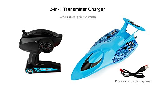 Product Descriptionsmall 2.4 GHz speed boat with 2 motors and rechargeable batteries0
