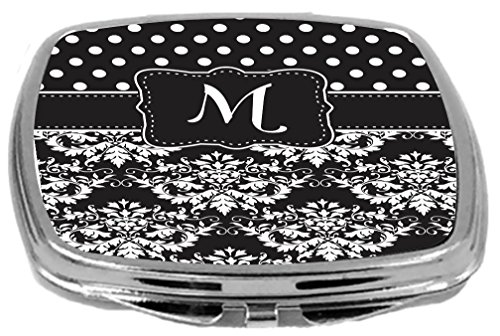 Rikki Knight Initial M Damask Dots Design Compact Mirror, Black/White, 17 Ounce