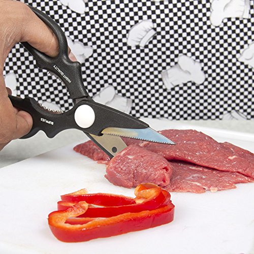 MAKE YOUR KITCHEN MORE EFFICIENT with our 8" Kitchen Shears. Stop wasting time with cumbersome food processors. Cut up foods right over the pan and avoid knife injuries. Ideal for meats and produce.