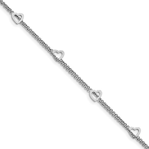 ICECARATS DESIGNER JEWELRY 925 STERLING SILVER 2 STRAND 1 INCH ADJUSTABLE CHAIN PLUS SIZE EXTENDER HEART ANKLET FOR WOMEN ANKLE BEACH CHAIN BRACELET