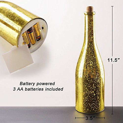 - FEAST YOUR EYES EQUALLY WITH LIGHTED CHAMPAGNE BOTTLES BY DAY - Each bottle is in the size of a regular champagne bottle in real life (3.5" in diameter, 11.5" tall). Sprayed with a pearly brown coating with a frosted effect - Glass is frosted in order for bottle to look nice when it is not lit. Embellished with an elegant curve bottleneck and a lifelike cork stopper - use the mood lighting with "firefly light" to elevate the style of your home during the daylight hours.