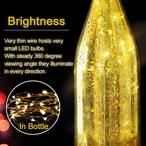 - PORTABLE & EASY DECORATING - Wireless; no need for pesky cords or plugs - Allow to create a fairy effect indoors and outdoors, even in the shade (unlike solar versions that must be placed in full sun). Easy to coordinate with other decorations - popular for parties, birthdays, anniversaries and daily adornment. Each comes with a plastic base for easy resting on mantels, shelves, dressers and patios in or around your home - Save the time & hassle of cutting your own champagne bottles.