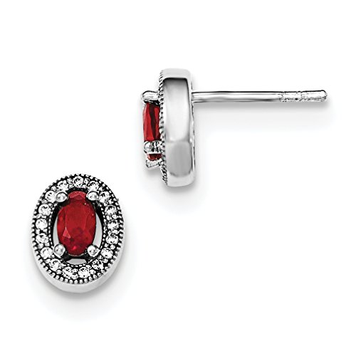 ICECARATS DESIGNER JEWELRY 925 STERLING SILVER RED WHITE CUBIC ZIRCONIA CZ OVAL STUD BALL BUTTON STUD EARRINGS