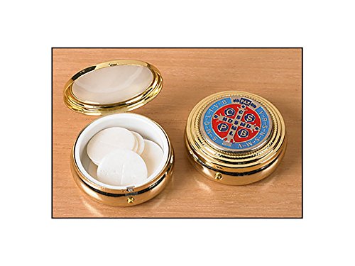 Red Blue Enamel Saint Benedict Medal on Brass Plated Host Pyx, Pack of 4, 2 1/4 Inch