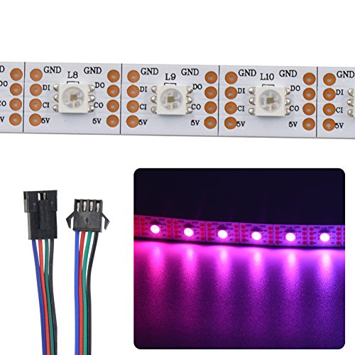 Mokungit 16.4ft 5m APA102-C Individually Addressable Magic Color LED Strip 60 Pixels/m 300 LEDs DC5V (White PCB Non-waterproof IP20)