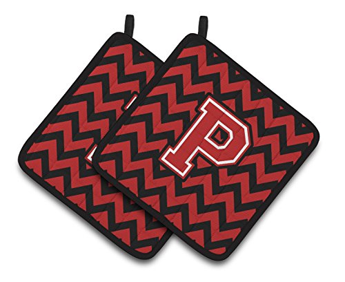 Caroline's Treasures Letter P Chevron black & Red Pair of Pot Holders CJ1047-PPTHD, 7.5HX7.5W, Multicolor