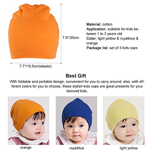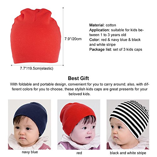 Binding : Apparel Product Description Information Take good care your sweet kids with our Vbiger kids cap! With lovely, fashionable and generous shape, these kids caps will make your cute kids look more fashionable and adorable. Besides, with different colors for you to choose, they are great presents for a birthday or another significant event. If you want to know more details or have any questions, please look through the detailed page or contact the customer service. ? Feature Material: knitted cotton Application: suitable for kids between 1 to 3 years old Size: height 7.9'/20cm; width 7.7'/19.5cm(elastic) Color: red navy blue black and white stripe Package list: set of 3 kids caps Notice * The actual color may vary slightly from the online image due to monitor color settings. * Please allow slight measurement deviation for the data. Package Including set of 3 kids caps 0
