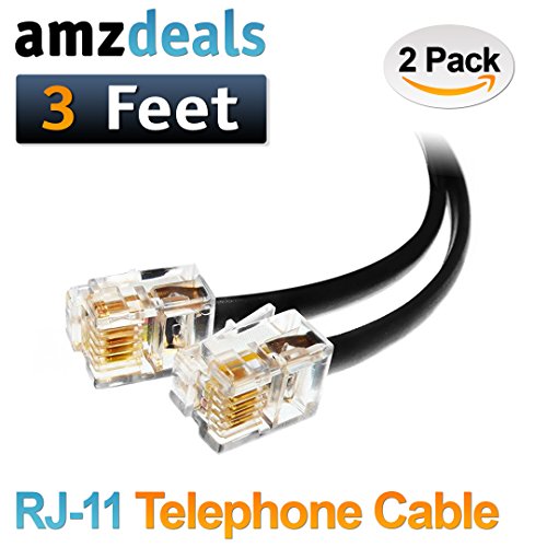 (2 Pack) 3 Feet Black Short Telephone Cable Rj11 Male to Male 36 inch Phone Line Cord
