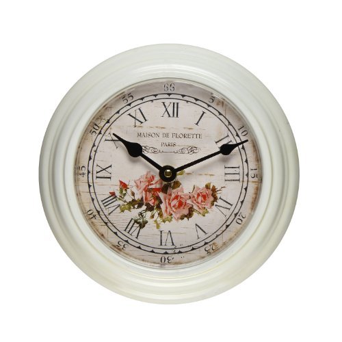 Adeco White Iron Vintage-Inspired Circular Wall Hanging Clock