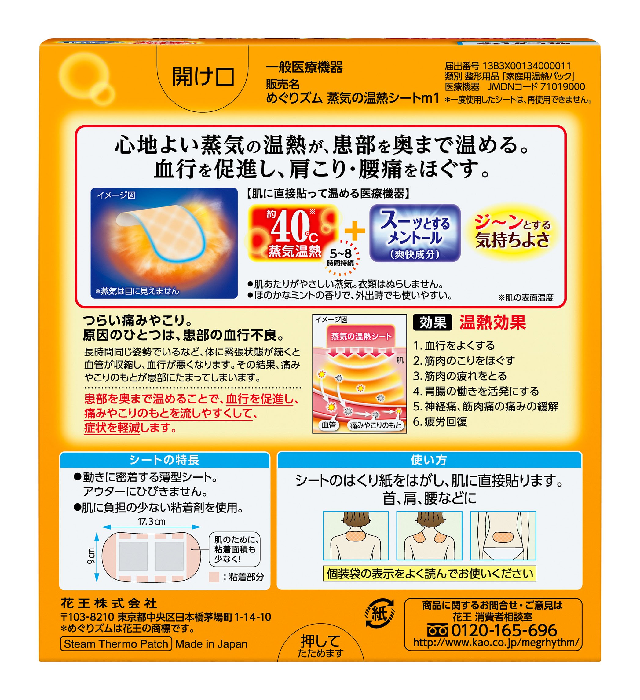 The comfortable steam heat warms the affected part all the way to promote blood circulation.