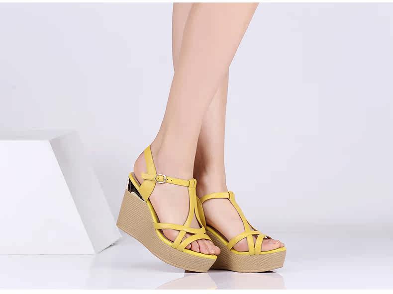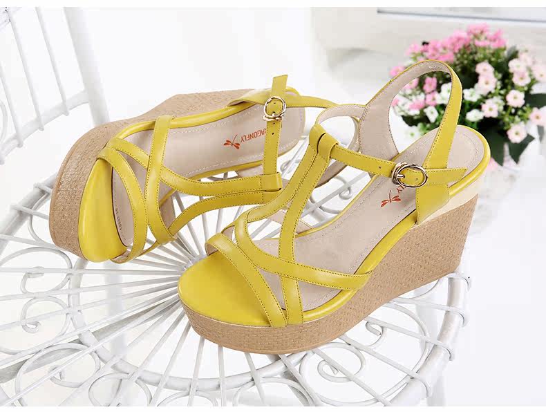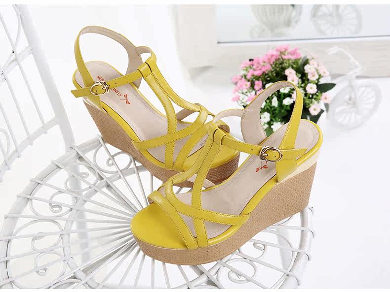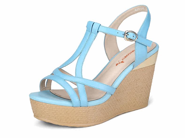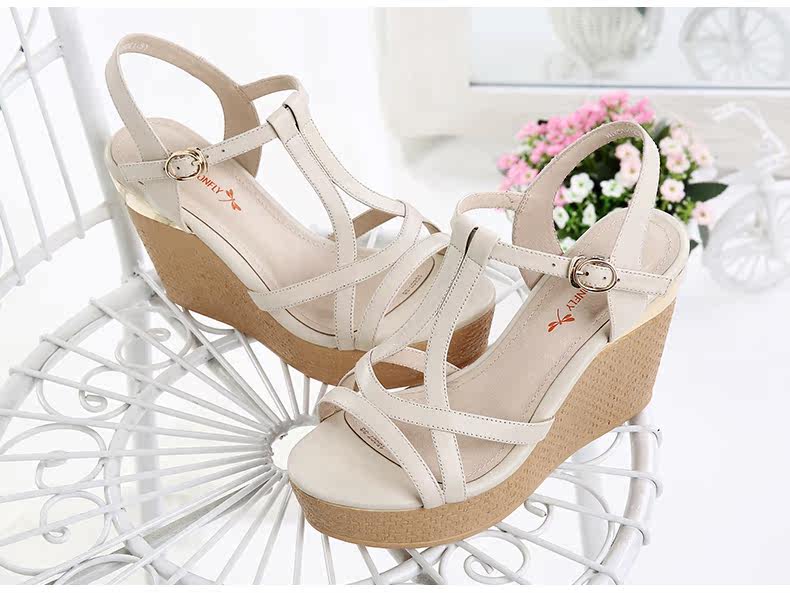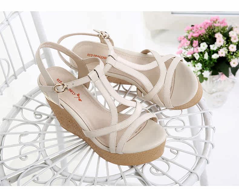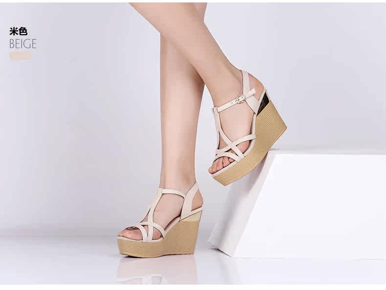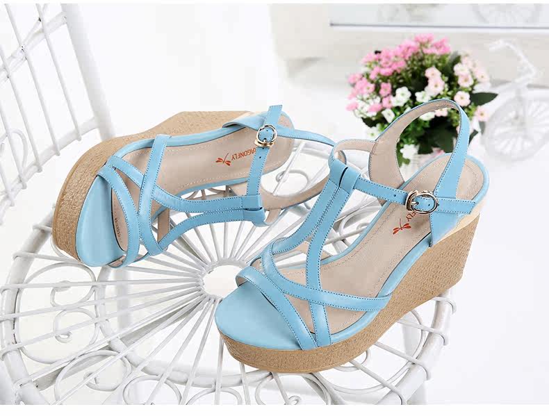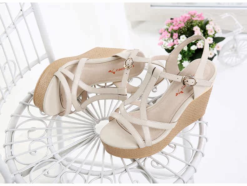 真皮新款夏季通勤防水台粗跟女鞋高跟凉鞋