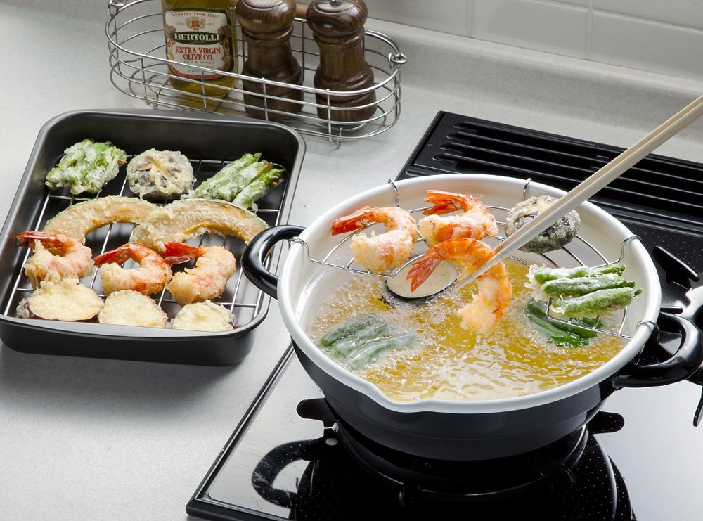 Enamel tempura pot 24cm Black & White TP-24R-BW