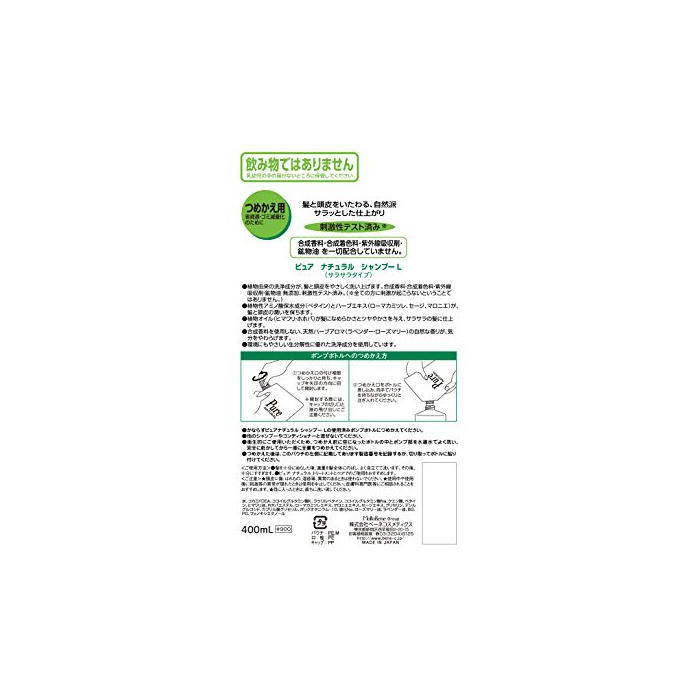 원본상품명: Pure NATURAL(ピュアナチュラル) シャンプ? L (サラサラタイプ) 詰替用400ml