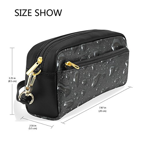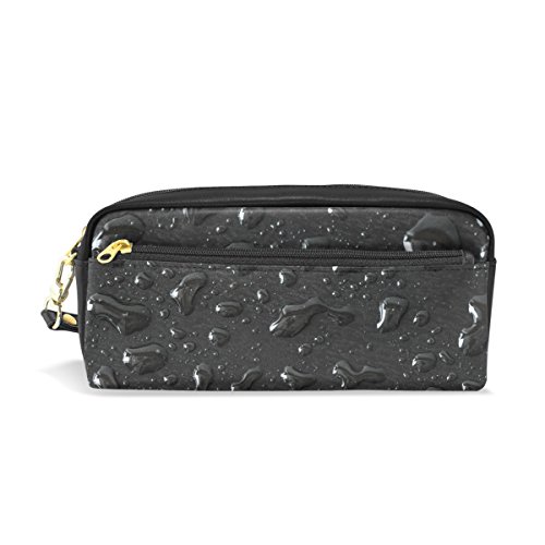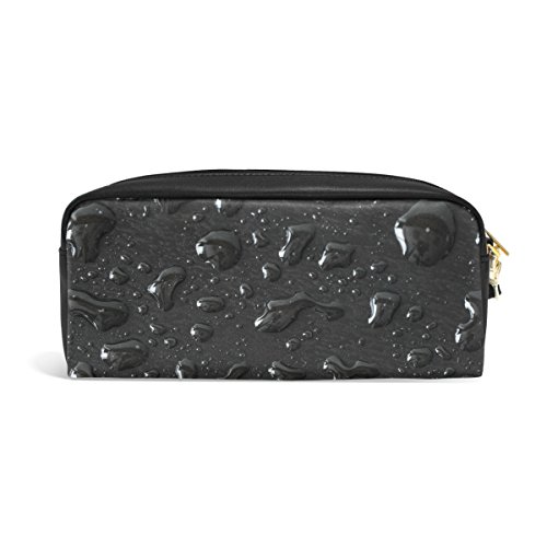 Water-Drop Leather Student Pencil Case Pen Cosmetic Bag for Girls Makeup Pouch