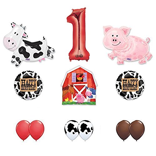 -. Title : Barn Farm Animals 1st Birthday Party Supplies Cow, Pig, Barn Balloon Decorations
