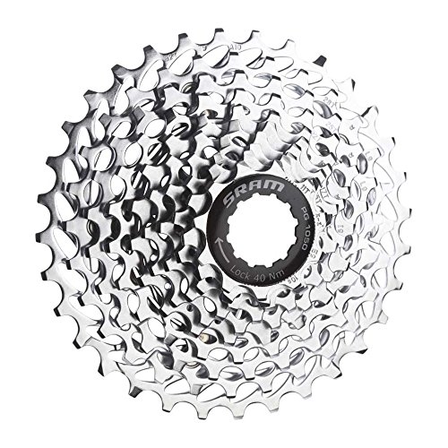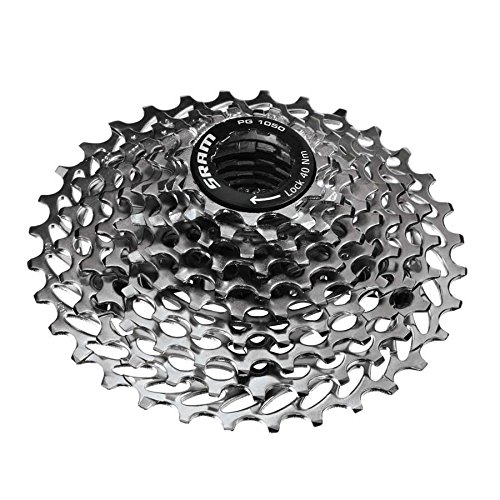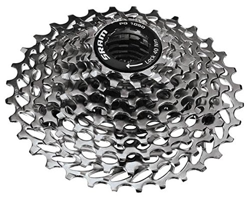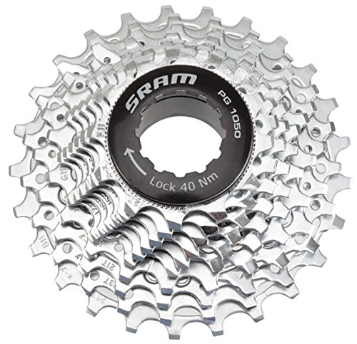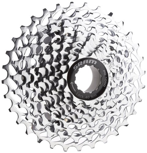 Studio : SRAM Publisher : SRAM Product Description SRAM's shifting prowess is one of its greatest selling points. The affordable PG-1050 10-Speed Cassette proves that you don't need to spend a fortune to get a stellar shifting experience. The PG-1050 uses SRAM's WiFli (Wider, Faster, Lighter) as the basis for its design. Using both an 11-36 and 12-36 option, you're given a full range of gears so you're never stuck doing that frantic "up, down, up" shifting to find something your legs like. SRAM uses PowerGlide technology to design the ramps and teeth to hold and release your chain for smooth shifting. The PG-1050 is built around an aluminum spider for the largest of the cogs to save weight. The cogs are nickel-plated steel, which keeps corrosion and rust at bay for a long life. The spline configuration means that it will fit any SRAM 9/10 speed freehub. It works well with any 10-speed chain, although SRAM touts the best shifting from its PC-1000 series chain. 0