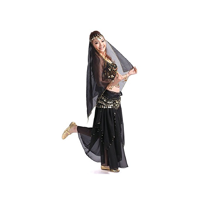 마음으로 간단한 선물 밸리댄스 의상 6점 세트 브라 톱 힙 스카프 힙 스커트 베일(veil) 리스트 밴드 (흑색)